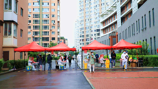 李佳徽、张淼、刘鸿冶、田帅与封控居家人员近距离采样,